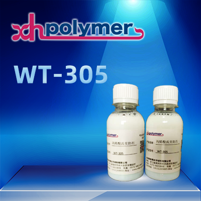 WT-305 水性丙烯酸类流变助剂产品是由特殊改性的丙烯酸类乳液。专门设计应用于水性涂 料体系,在有醇醚类共溶剂的水性体系中有效建立触变粘度,控制流挂和防止沉降,该产品 具有良好的铝粉定向排列作用。
